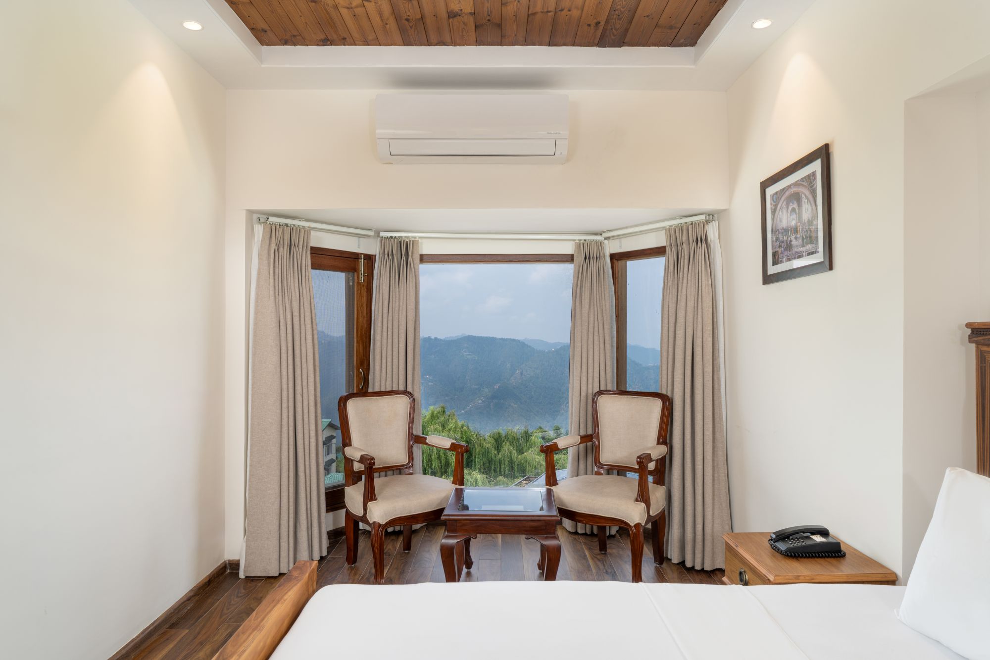 Spacious and exquisitely refined, the Premium Valley View Rooms present sweeping panoramas of the majestic Himalayan ranges and the tranquil valleys below. Designed for discerning travelers, these rooms combine elegant interiors with exceptional privacy, creating an intimate sanctuary amid Shimla's serene hills.