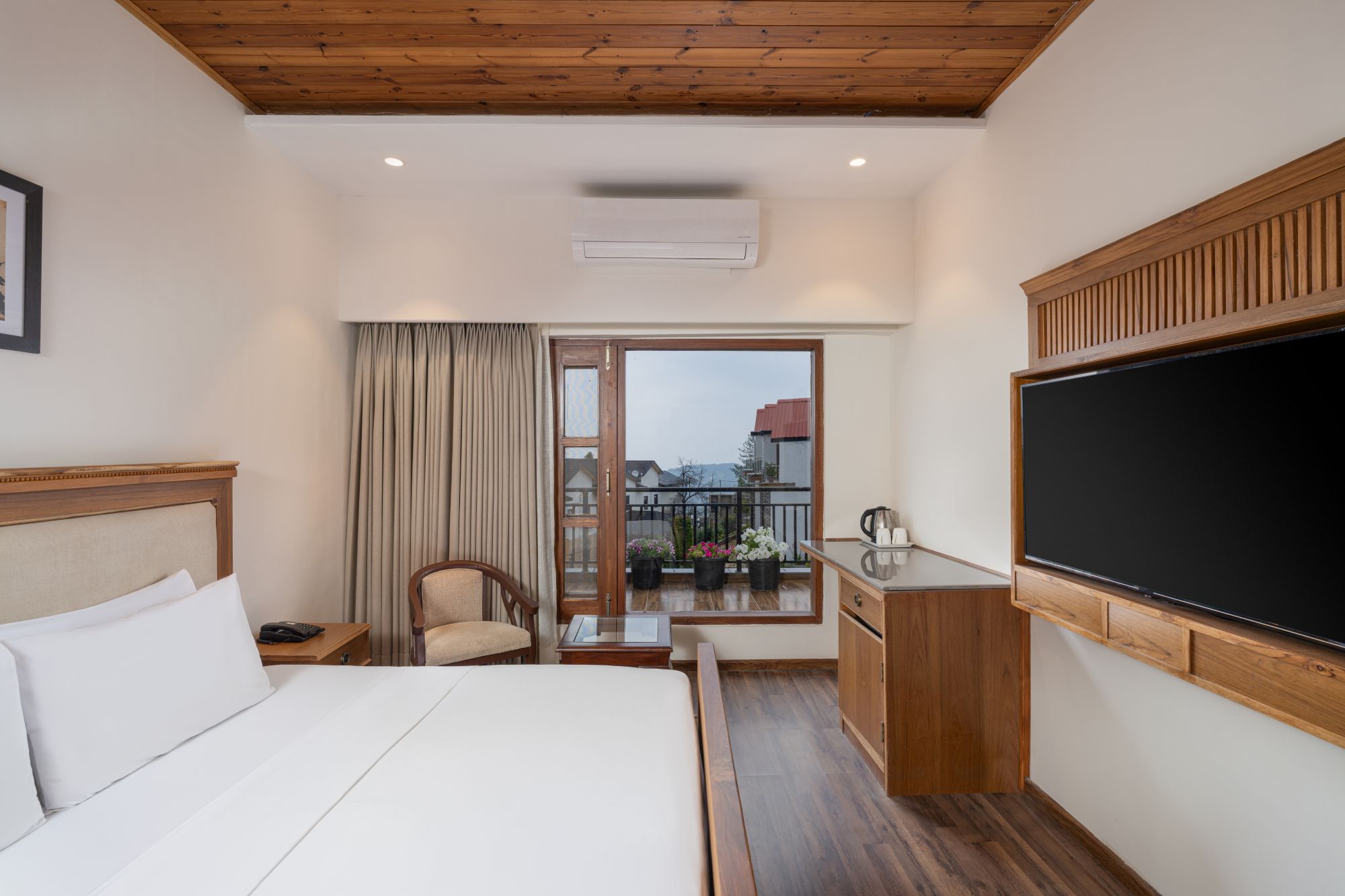 At Koti Resort, every room is designed to reflect the charm of a classic hill retreat while offering modern comforts. Inspired by Swiss Chalet architecture, clusters of rooms encircle a lush central lawn, creating a sense of community and serenity.